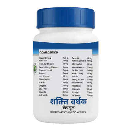 Boosts stamina, strength & energy levels Supports male vitality & reproductive health Reduces stress, fatigue & mental exhaustion 100% Ayurvedic Shakti Vardhak tablet – safe & natural formulation