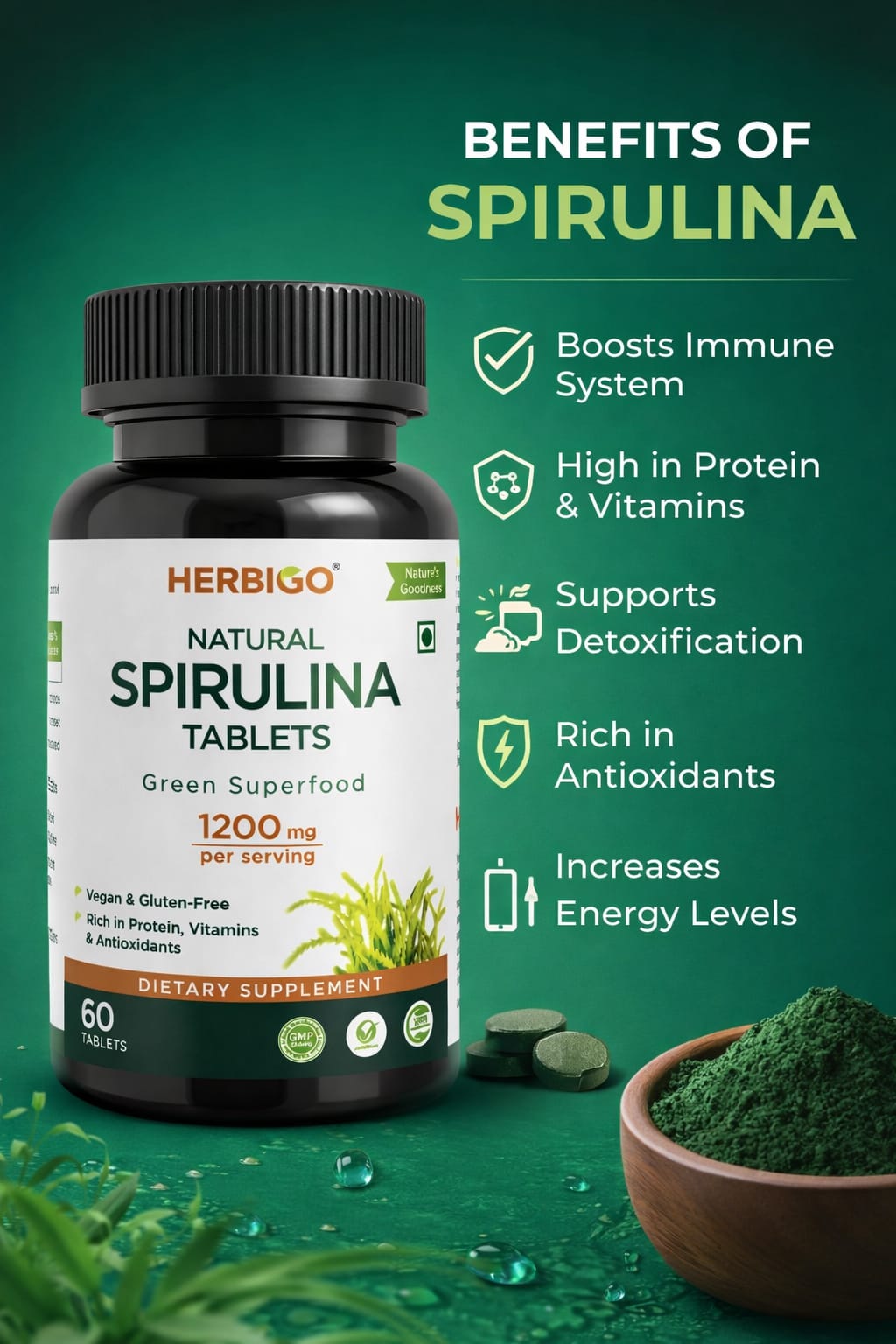 Whether you’re looking to boost your immunity, improve energy, or add a nutrient-rich supplement to your diet, Herbigo Spirulina Tablets offer a reliable and natural solution.