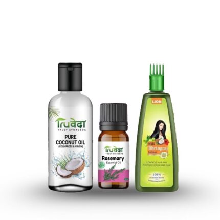 Elevate your hair care routine with the Rosemary Combo from TruVeda — a natural blend featuring Lion Nili Bhringraj Tailam (200 ml), virgin coconut oil, and pure rosemary essential oil (15 ml). This formulation combines the nourishing power of bhringraj and the revitalising benefits of rosemary to promote stronger, shinier, and healthier hair.